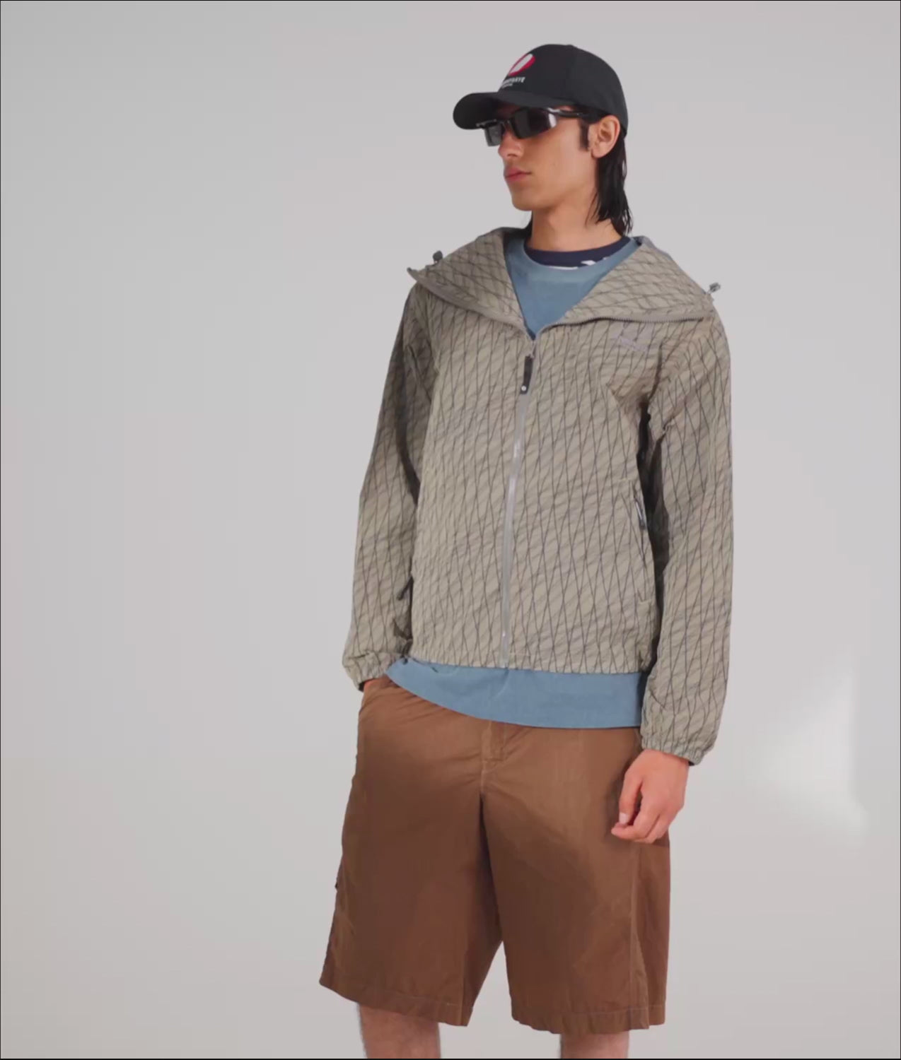 - Full-zip anorak with hood and high collar