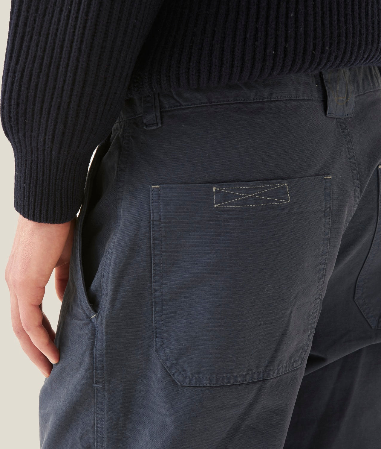Men’s trousers with a straight and comfortable fit, designed to offer maximum comfort without compromising on style. Made from durable, dye-ready canvas, the garment features reinforced stitching and contrasting threads that highlight its craftsmanship. The patch back pockets are both practical and secure thanks to internal Velcro closures, ideal for carrying small essentials. The pocket interiors are lined with sturdy fabric designed for long-lasting use. Inside, the waistband is finished with a tone-on-tone tape that ensures a well-structured fit. A reflective print on the rear belt loop and one of the pockets adds a modern and highly visible touch to complete the look.